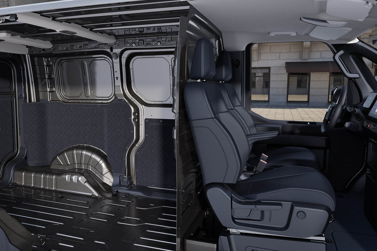 - Cargo: Drei Größen – Standard, Lang, High Roof – mit hoher Nutzlast, L‑Schienen, V2L-Stromversorgung und großer Ladehöhe